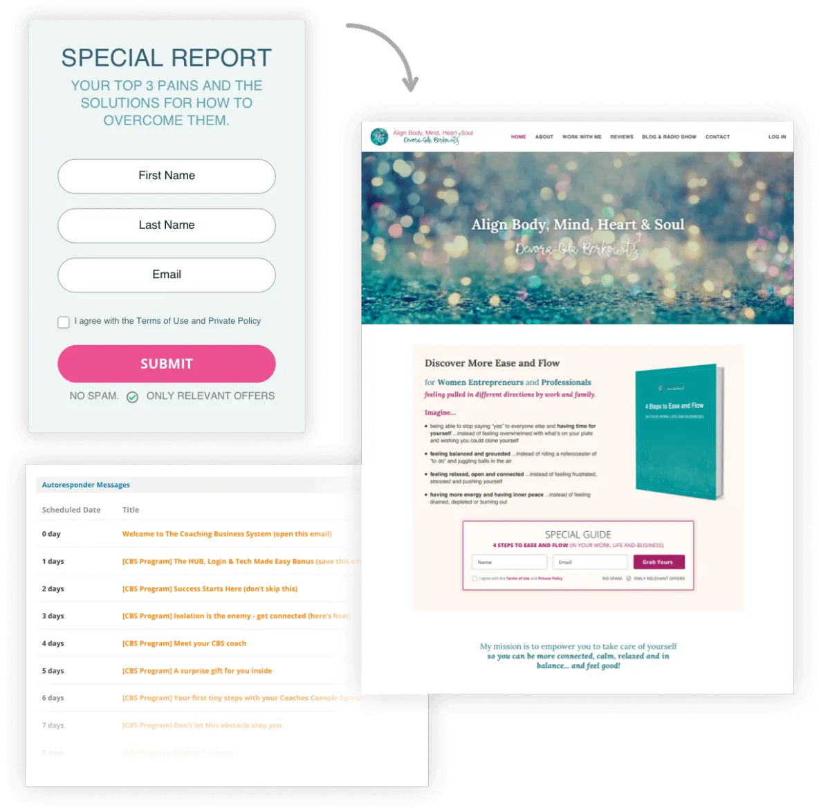 Create landing pages, sales pages, campaigns, and funnels that attract new signups to your email list, nurture prospective clients, earn additional revenue, and help you enroll more people into your coaching programs.