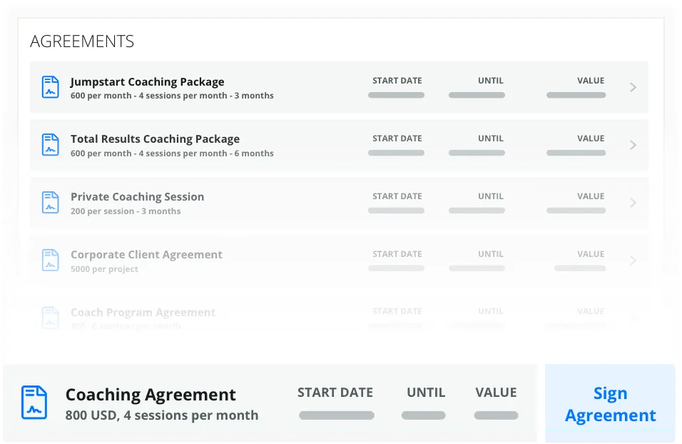 Link client agreements to your online billing system, and invoice per project, per appointment, or per month.