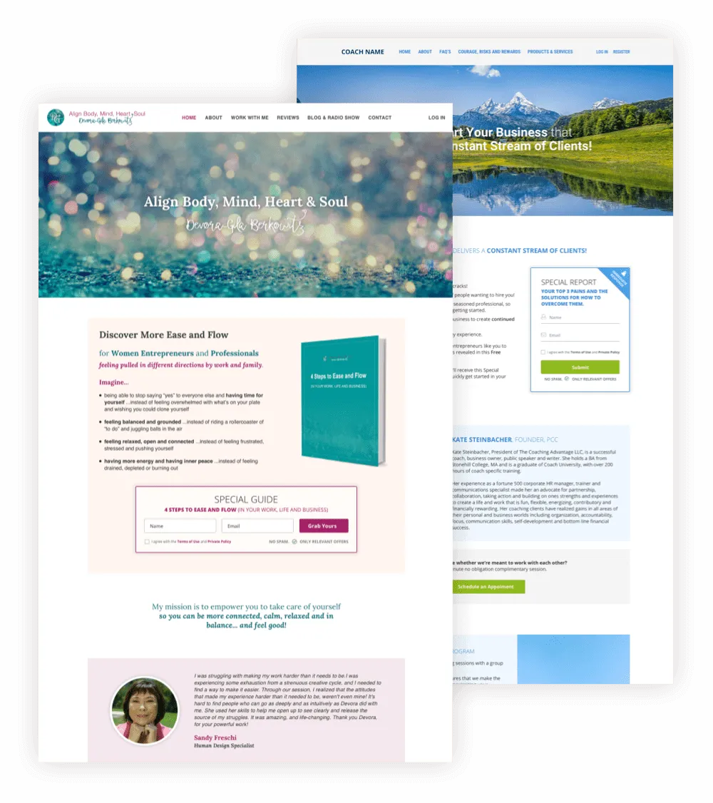 Then grow as you want to, by adding landing pages, lead magnets, coaching packages, online courses, free sample sessions for prospects, and other marketing tools.