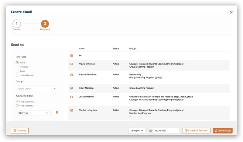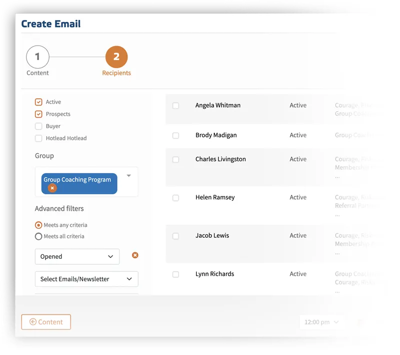 Communicate the most effective messages to the right people. Segment your communications by active clients, inactive clients, groups, hot leads, and prospects.