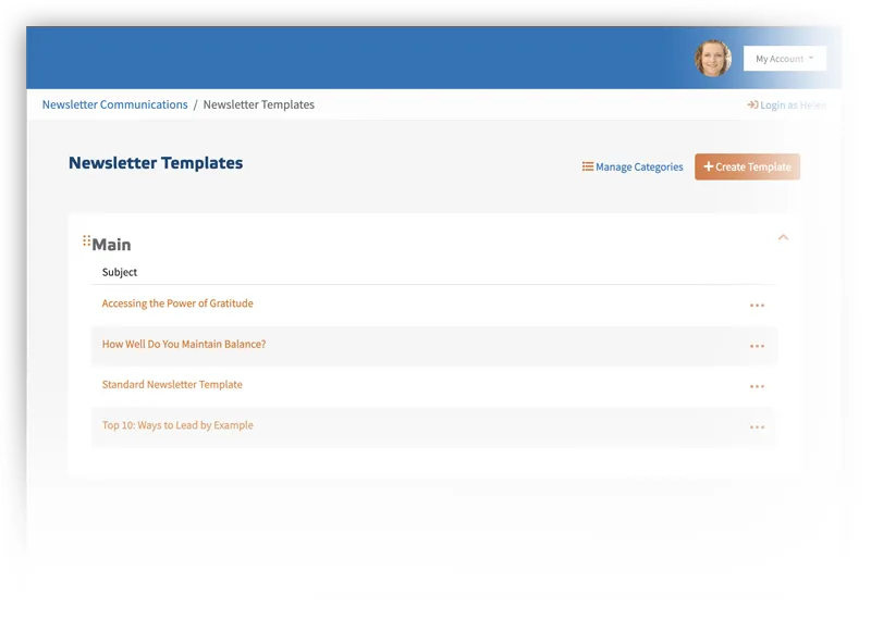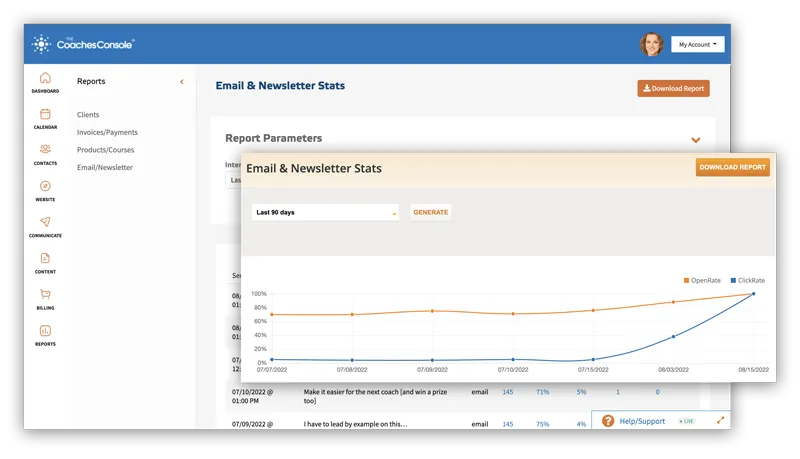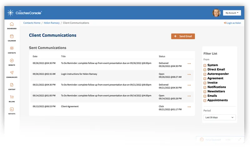 Easily organize and track communications sent to each client. All communications (email, newsletters, notifications, autoresponders, invoices, etc.) are archived and can be organized by date, subject, and client.
