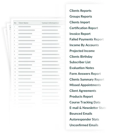 Filter client data and create customized reports. Manage groups easily by reviewing group sizes and contacts categorized by groups.