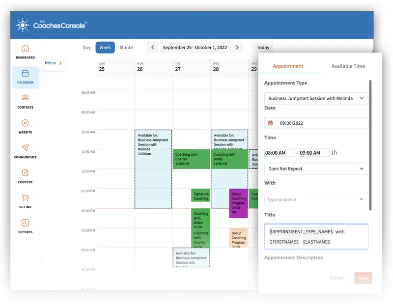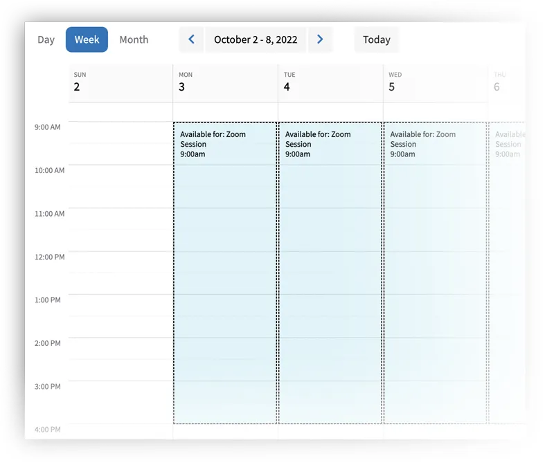 All appointments and appointment reminders are time zone specific, making it easy for you and your client to keep track of upcoming sessions.