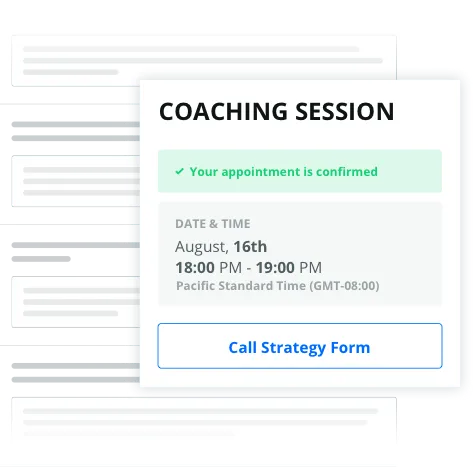 Make session preparation seamless for your clients. Automated appointment reminders include a direct link to the interactive “Call Strategy Form,” so your prospects and clients have everything they need to get ready for their coaching session.