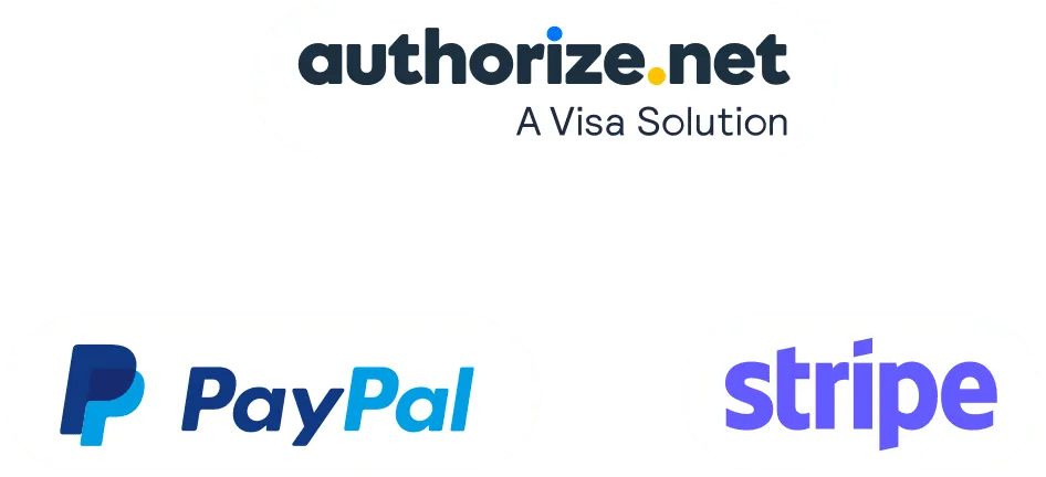 Quickly integrate with your existing PayPal, Stripe, DirectPay or any merchant provider that uses Authorize.net as the gateway provider.