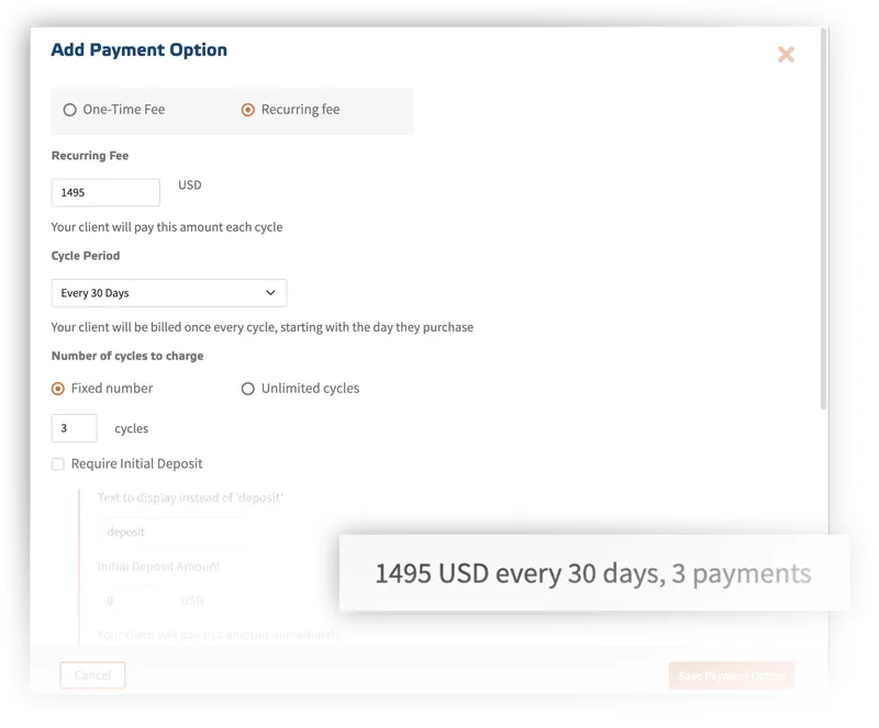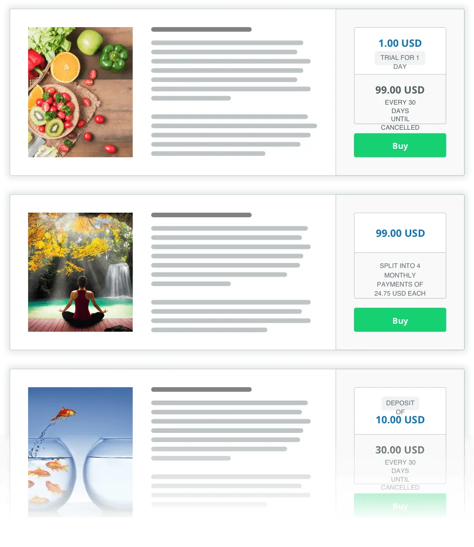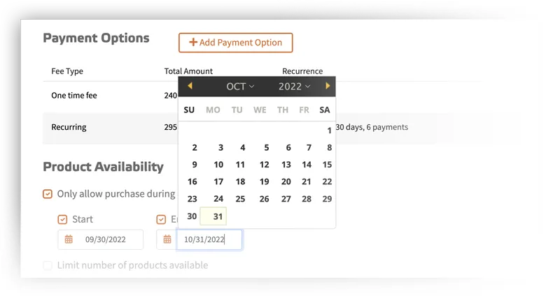 Create one-time fee products or products with recurring payments. Sell big ticket items more easily by offering installment payment plans.